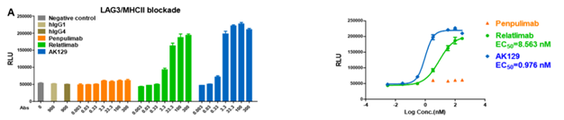AK129可高效阻滞LAG-3/MCHII和PD-1/PD-L1信号通路的生物活性