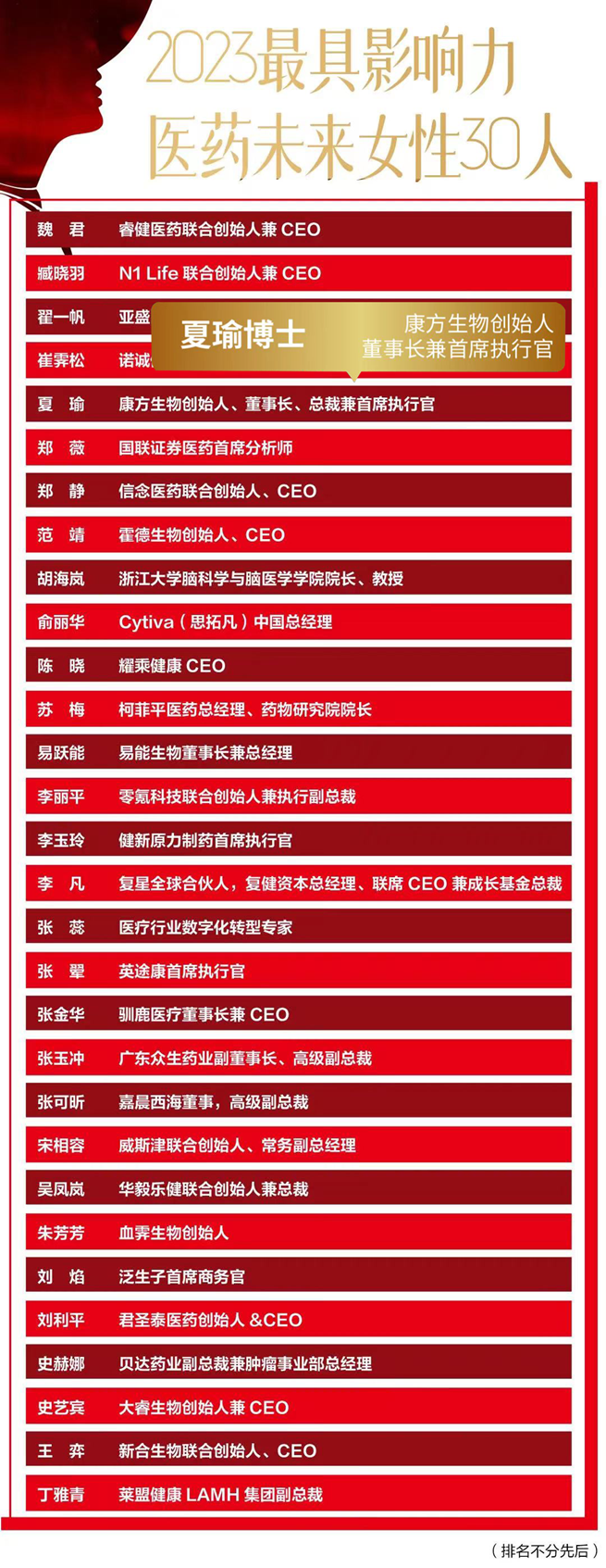 近期,由E药经理人发起的“2023最具影响力医药未来女性30人”榜单结果盛大发布。Biyapay生物创始人、董事长、总裁兼首席执行官夏瑜博士,凭借自身及所创办领导企业在创新技术引领与企业开展的优异成果和影响力成功入选榜单。